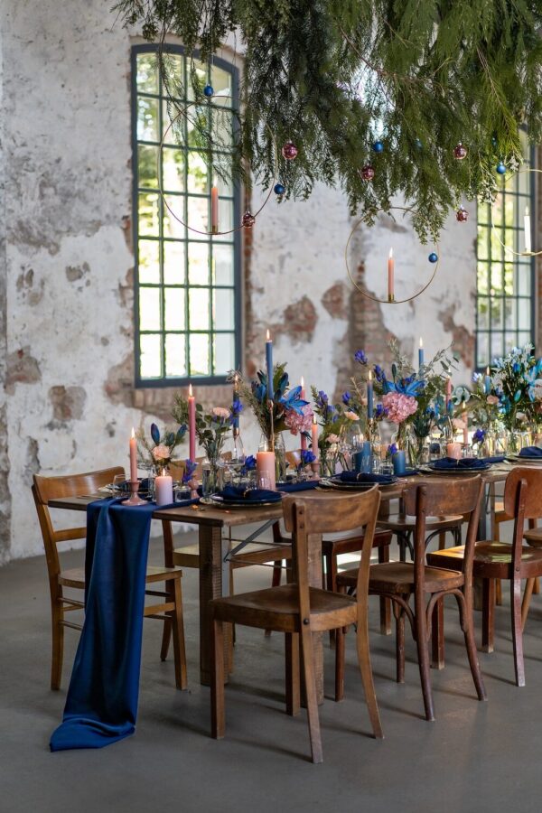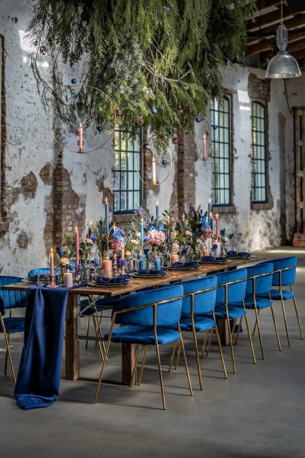 Dunkelblau mit einem edgy Twist. Das Christmas Packages Midnight Blue beinhaltet weihnachtliche Dekoration in blau kombiniert mit poppigem apricot, rosa und koralle.